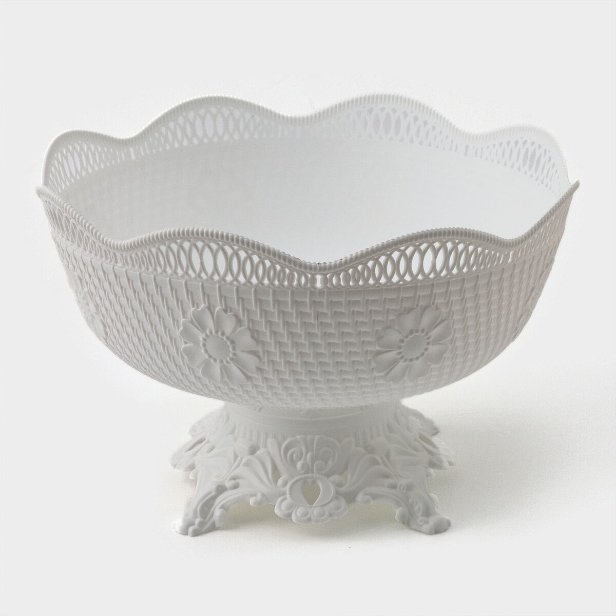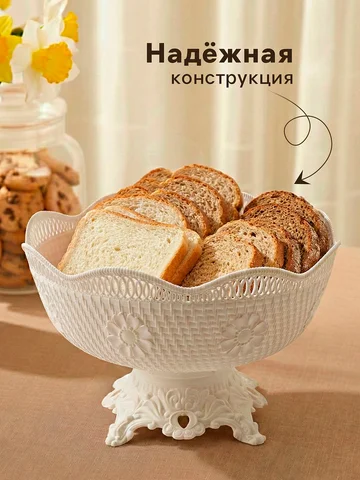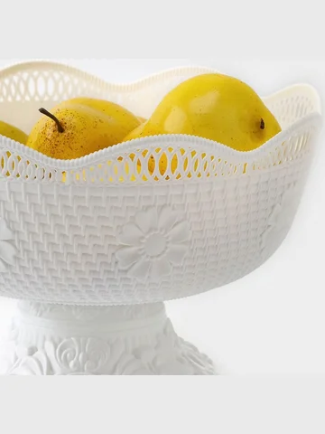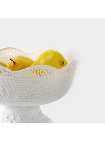 Ваза фруктовница на ножке, пластик, 26×17 см, белая. Элегантная сервировка стола - верный признак, по которому можно определить радушного хозяина. Блюдо универсальное, подойдет для подачи овощей, фруктов, хлеба, нарезок и других не горячих продуктов. Неповторимый дизайн украсит ваш стол и никого не оставит равнодушным своей красотой. Преимущества: