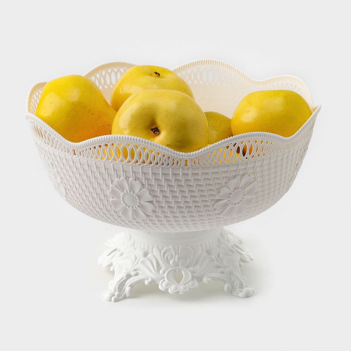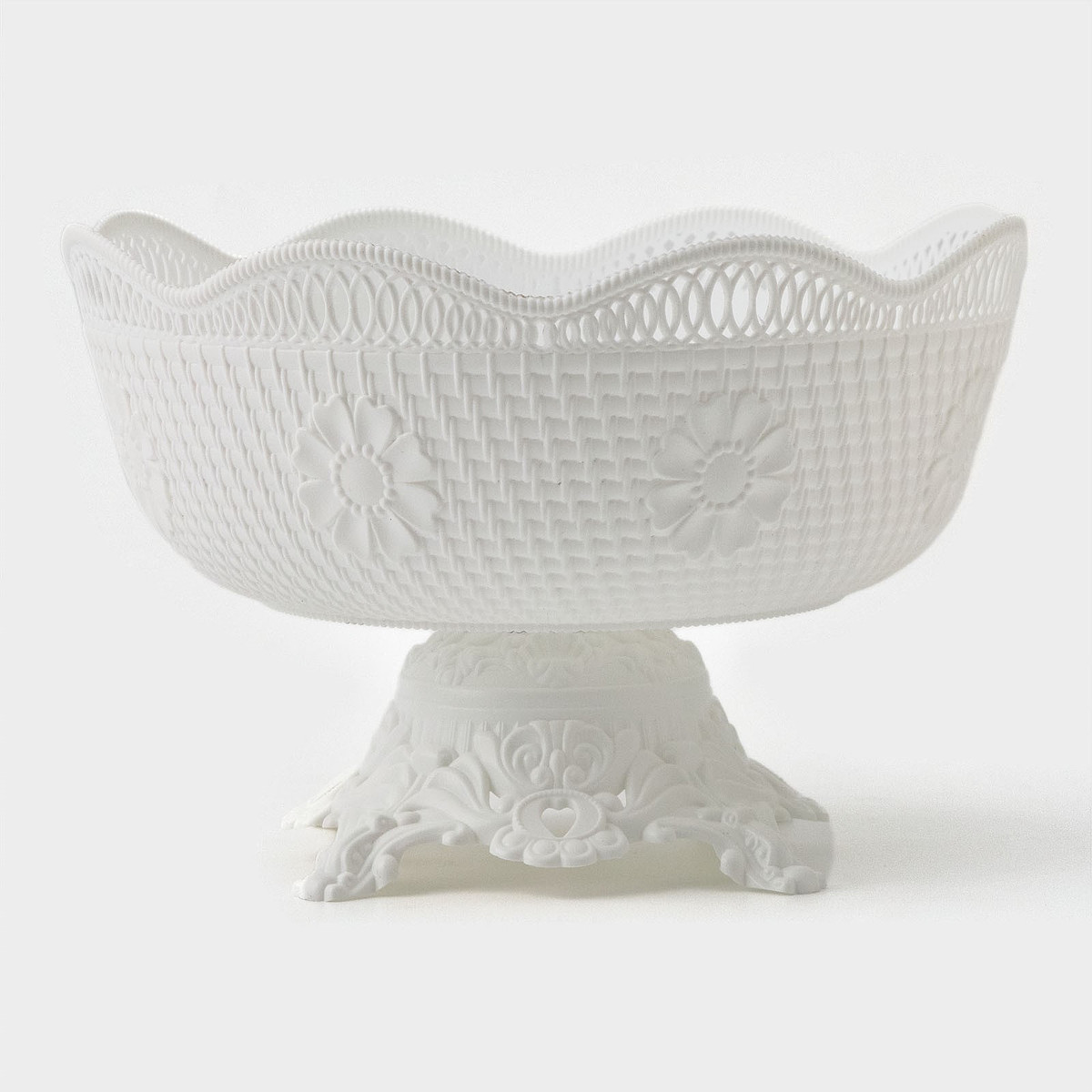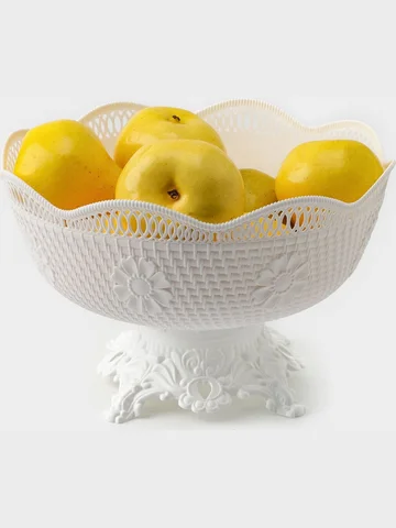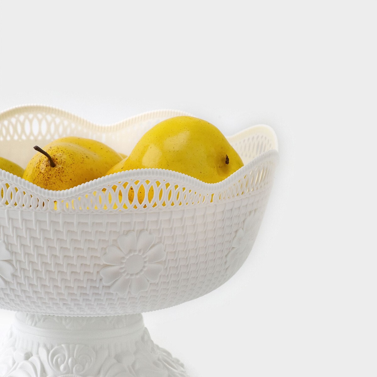 Ваза фруктовница на ножке, пластик, 26×17 см, белая No brand
