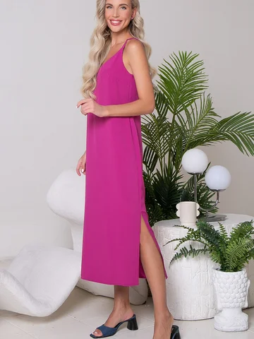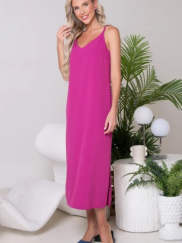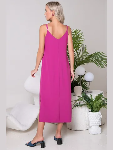 Платье-комбинация с разрезом сбоку из костюмной ткани средней плотности, можно носить без белья - второй слой как маечка. Держит форму. Бретели регулируются. Прямой крой, стройнит, скрывает несовершенства. Платье-комбинация универсальная. Летом носим как самостоятельную вещь или в сочетании с рубашкой, жакетом или джинсовкой. Зимой со свитером сверху или с водолазкой под платье. Платье не приталенное, если необходимо подчеркнуть талию - то в помощь ремень. Дополните аксессуарами и у вас будет отличный новогодний образ.