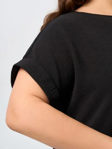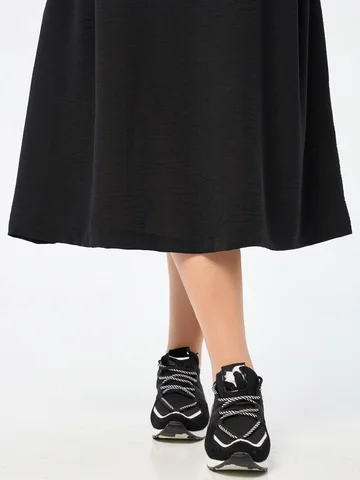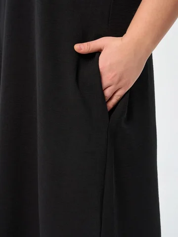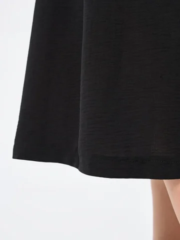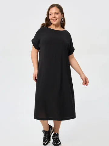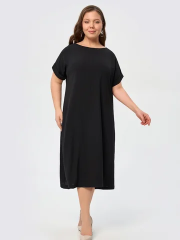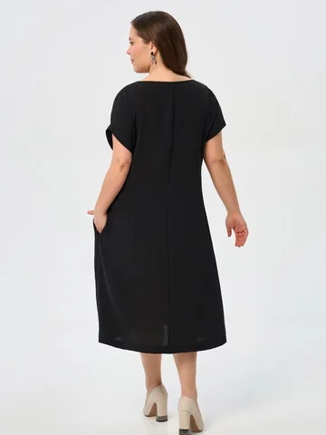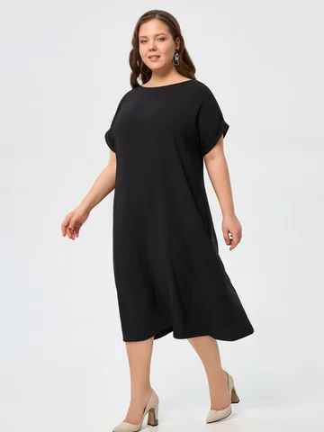 Платье женское А-образного силуэта, из плотной шелковистой ткани с жатой фактурой , с карманами в боковом шве.Горловина круглая, рукав цельнокроенный, короткий, на притачной манжете.